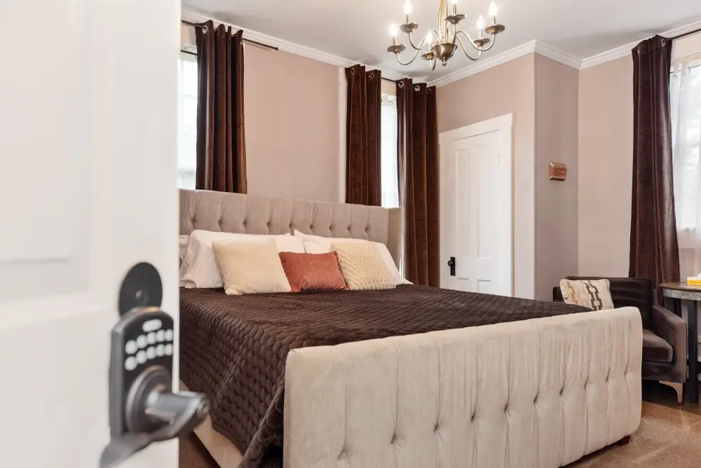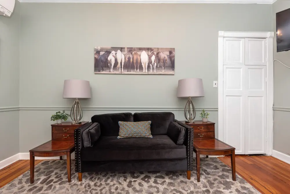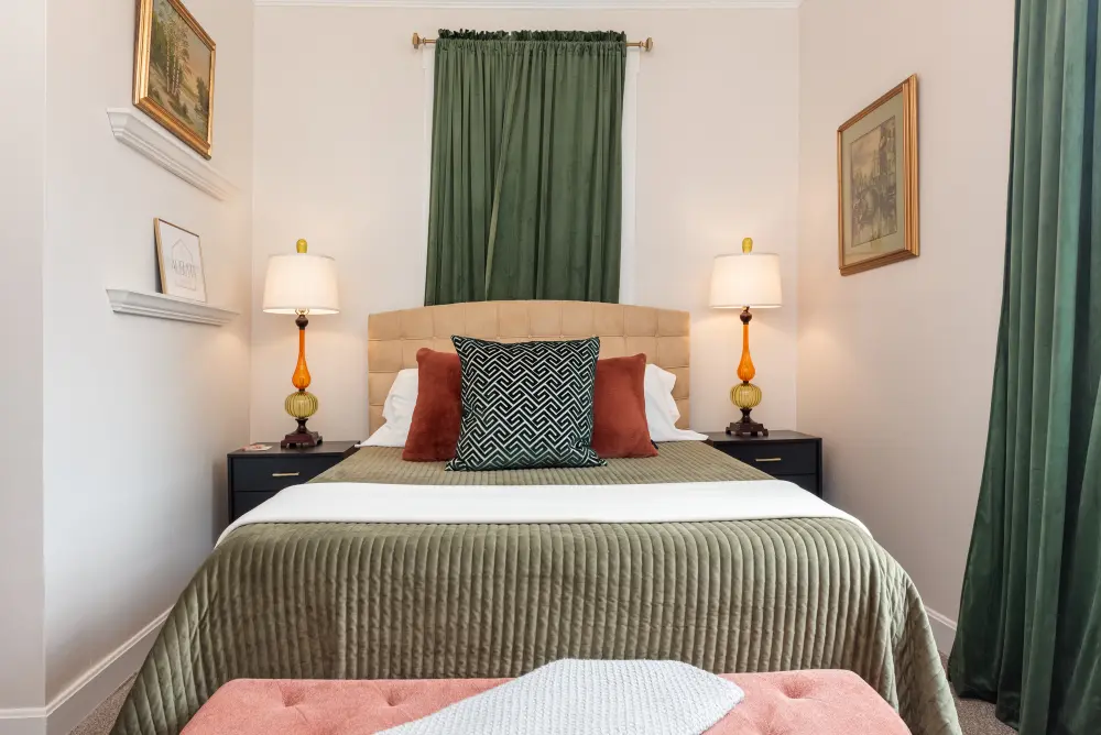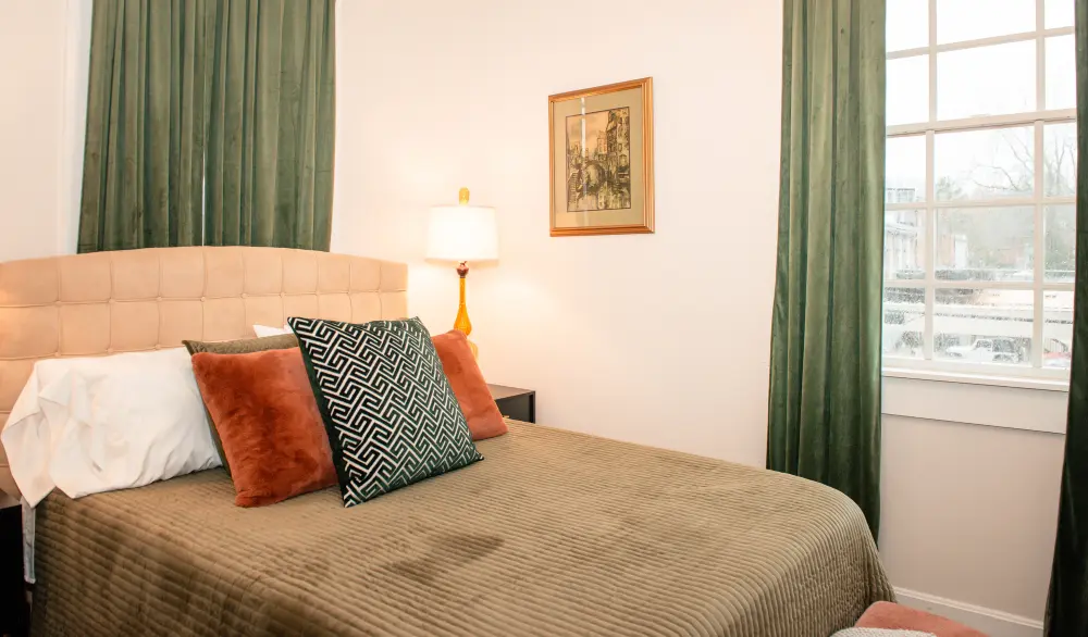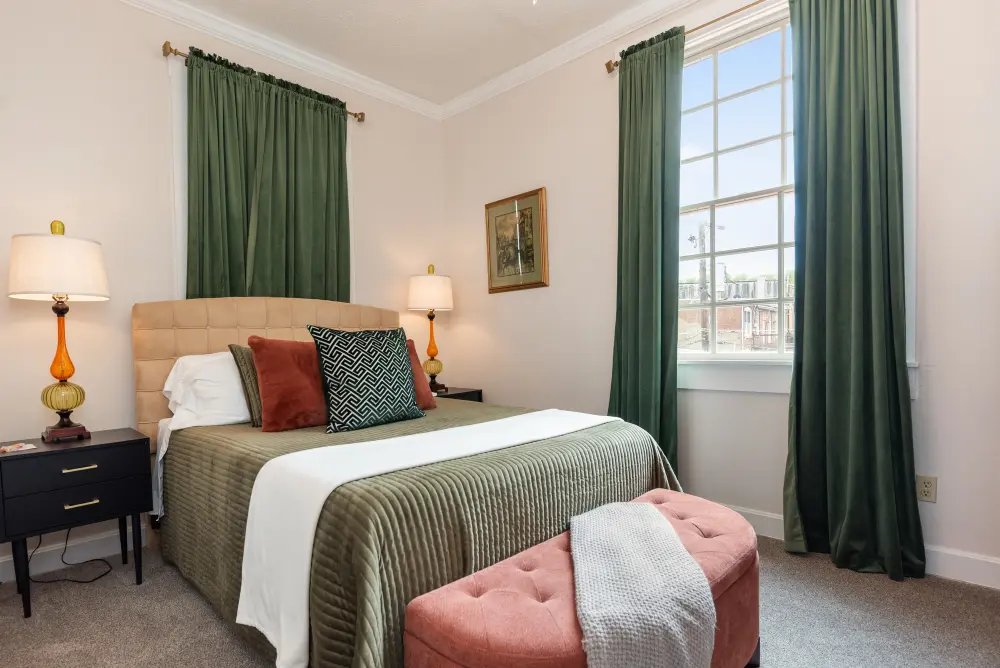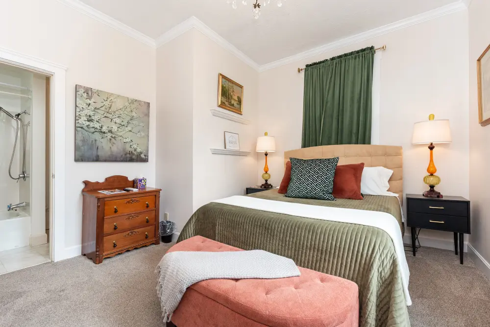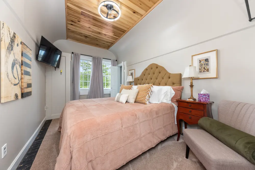 A tribute to Kentucky’s rich musical heritage, the Bluegrass Room is a relaxing and tranquil space designed for ultimate comfort. This inviting room features a cozy queen-size bed and a private en suite, creating a serene retreat perfect for unwinding. With its calming ambiance and thoughtful design honoring Kentucky’s best music, the Bluegrass Room provides a warm and inviting atmosphere that hits all the right notes for a memorable stay in the Bluegrass State.