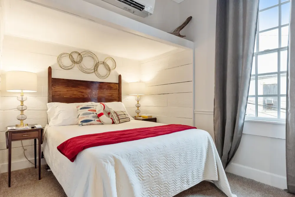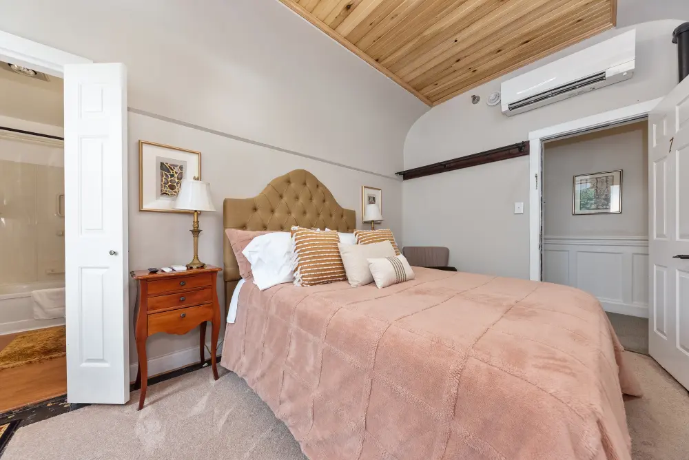 Located on the second floor, the Guesthouse Room features a comfortable queen-size bed and a private en-suite for your convenience. This room pays homage to the hotel’s most recent history as The Augusta Guesthouse, a name it proudly carried from 2022 to 2024. With its blend of modern amenities and a nod to the building’s evolution, the Guesthouse Room provides a welcoming and intimate space for a relaxing stay. Whether you’re here for business or leisure, this room offers a peaceful retreat with a connection to the hotel’s story.