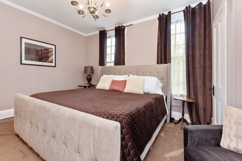 Named in honor of Captain Philip Buckner, a Revolutionary War veteran and the founder of Augusta, the Buckner Room is the largest and most spacious accommodation at The Benchmark. Featuring a comfortable king-size bed and a private en suite bathroom, this room offers a relaxing retreat with plenty of space to unwind. Its name pays tribute to Buckner’s role in shaping Augusta’s history. Thoughtfully designed for comfort and convenience, the Buckner Room is an inviting choice for any guest seeking a restful stay.